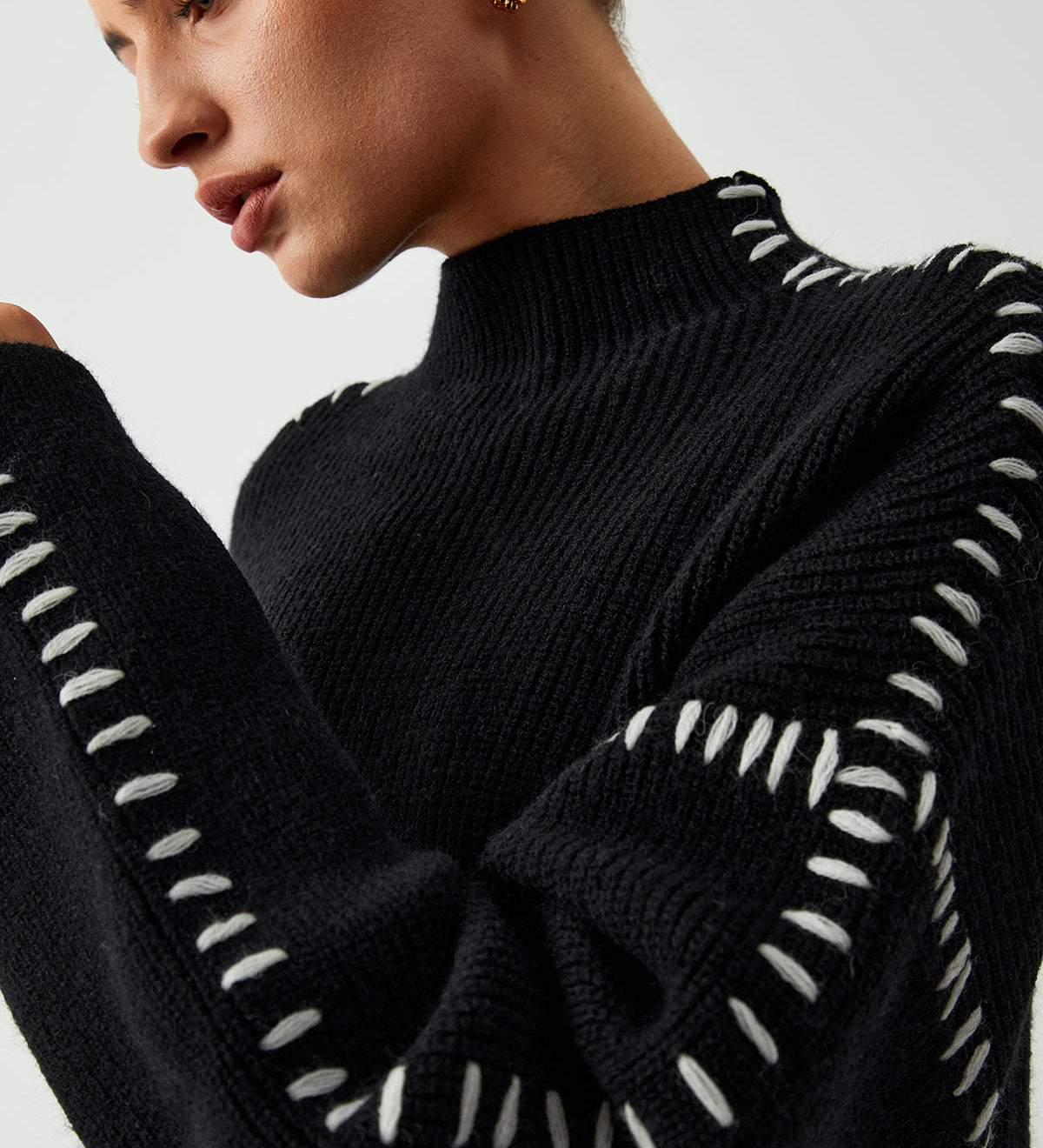 Alma | Oversize-Dolcevita πουλόβερ με λεπτομέρειες Piqué