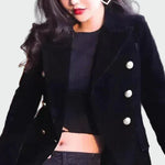 Κομψό σακάκι σε διαχρονική γραμμή με διπλό κούμπωμα που αναδεικνύει τη σιλουέτα. Η δομή του προσφέρει επαγγελματικό και εκλεπτυσμένο χαρακτήρα, ενώ είναι εύκολο να φορεθεί σε καθημερινές ή βραδινές περιστάσεις. Ο μινιμαλιστικός σχεδιασμός το καθιστά βασικό κομμάτι για κάθε γκαρνταρόμπα.