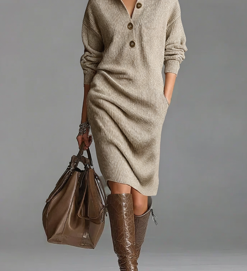Λορένα | Πλεκτό φόρεμα με γιακά και κουμπιά