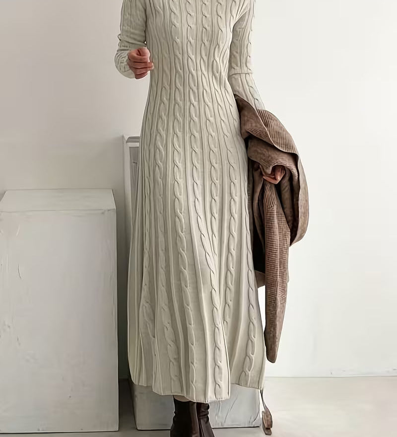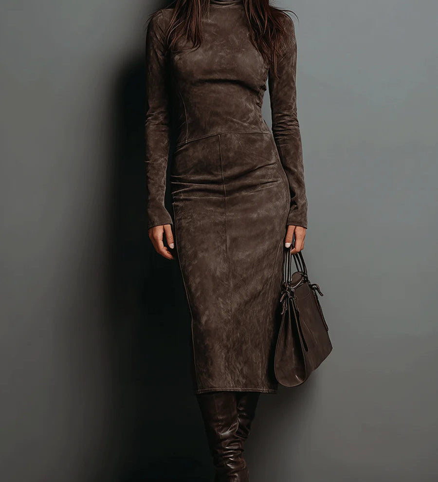 Žaneta - Midi φόρεμα από σουέτ με ψηλό γιακά και μακριά μανίκια