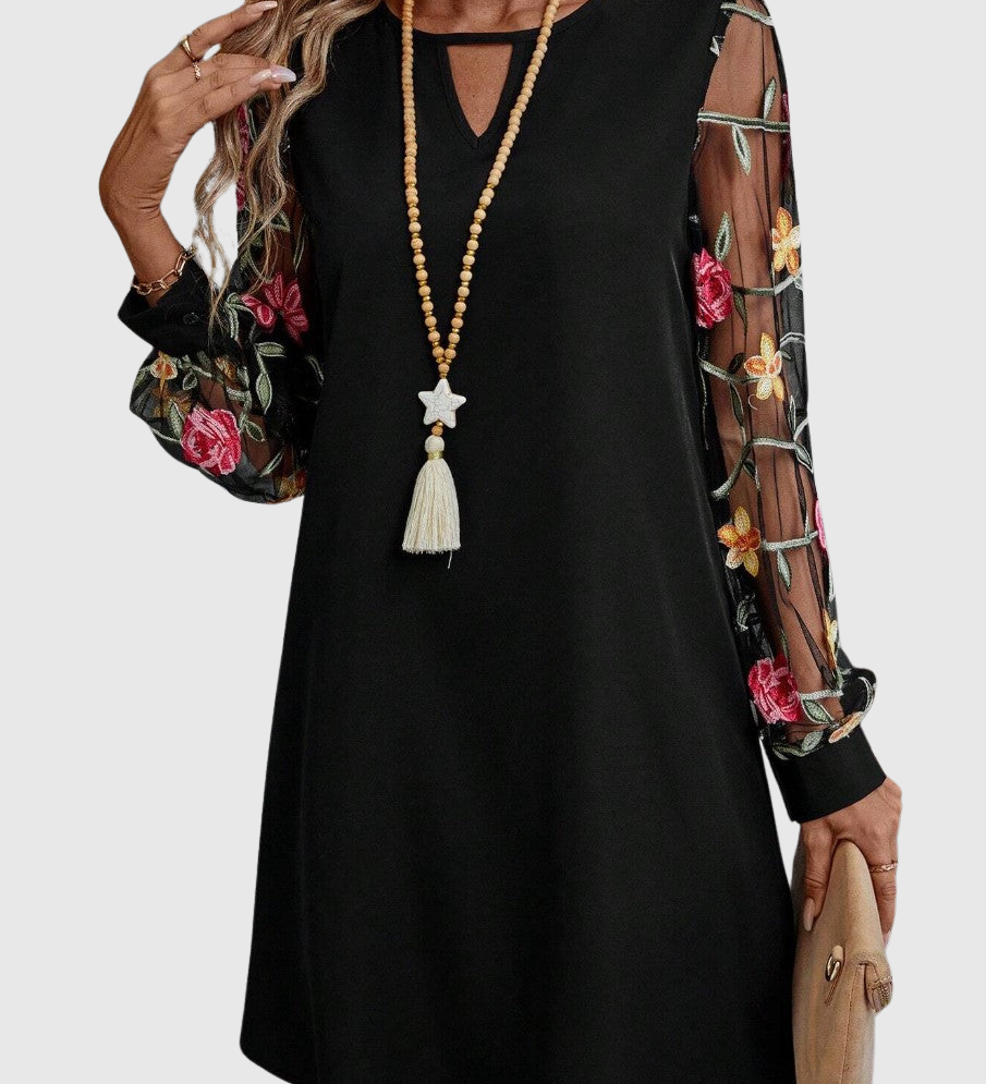 Αμέλια - Φόρεμα με στρογγυλή λαιμόκοψη και λουλουδάτο μοτίβο