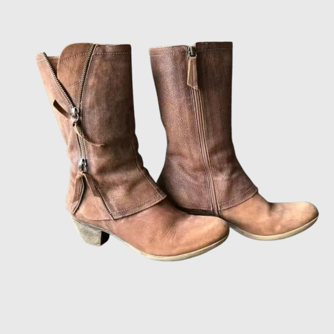 Ανακαλύψτε τις μπότες Alma Vintage, οι οποίες συνδυάζουν την κλασική «ιπποτική» εμφάνιση με μια άνετη σχεδίαση για κάθε μέρα. Οι κομψές αγκράφες, η έντονη πτυχώσεις και η ανθεκτική τετράγωνη τακούνι με πλατφόρμα δημιουργούν μια τολμηρή, αλλά σταθερή εμφάνιση. Χάρη στην μαλακή σόλα από λάτεξ και το πρακτικό πλαϊνό φερμουάρ, θα απολαύσετε τόσο το στυλ όσο και την άνεση καθ' όλη τη διάρκεια της ημέρας.